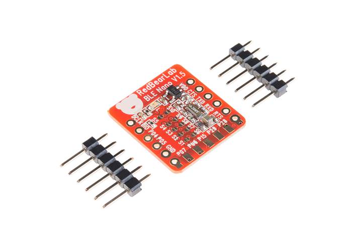 Note: The RedBearLab BLE Nano includes two 1x6 male headers that can be soldered on after purchase for easy interface. Additionally, you can find a complete pin-out for this board on the Product Page link found in the Documents section below.