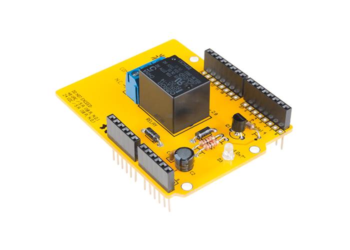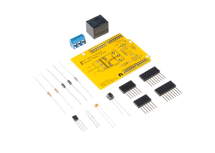 The Relay Shield is sold as an easy-to-assemble kit and includes everything listed below with clear assembly instructions listed in the documents section.