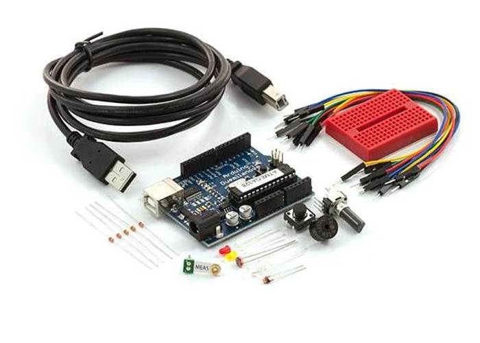 (Original Uno version in this kit - end of stock) The Arduino Starter Kit Flex with Uno is a fantastic way to get into microcontrollers and electronics. It contains all the bits required to start playing with Arduinos. The kit makes a great gift - even if just for yourself. Based on the Arduino Uno USB Board this kit contains sensor, buzzors and prototyping gear to get started now.