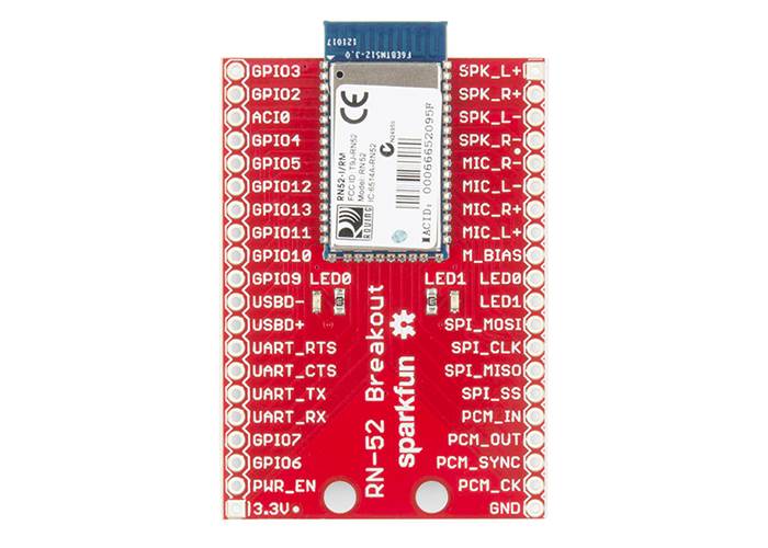 The RN-52 Bluetooth from Roving Networks is an audio module that makes it simple for you to create a hands free audio system for your car or remote control your media centre. With this breakout board we’ve made it easy for you to drop it into any project you could use it for. All pertinent headers are broken out and labelled for your convenience.