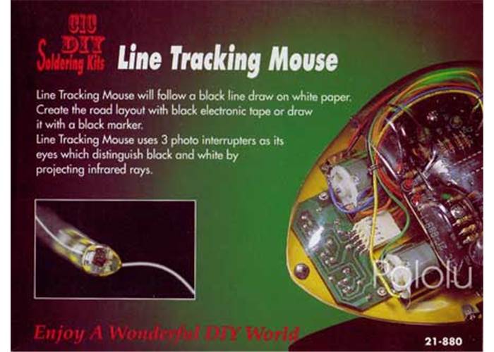 Note: The Elenco line-tracking mouse is a kit; assembly is required. This kit requires soldering. Four AA batteries are required but not included.