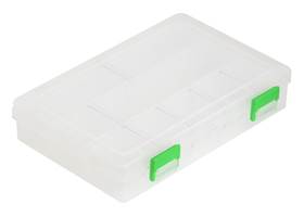This 8″ × 5.5″ × 1.5″ component box has adjustable compartments, two secure latches, and rounded bottoms for easy retrieval of small parts, such as jumper wires, header pins and connectors, screws and nuts, or discrete components. The box includes six compartment dividers.