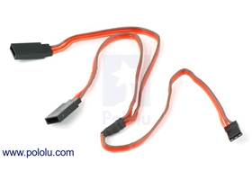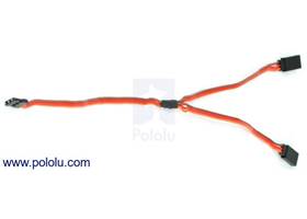 This 12" (300 mm) Y-cable is typically used to connect two servos to a single servo port on an RC receiver or servo controller. It has a single female JR connector connected to two male JR connectors, which means it is compatible with almost all of the RC servos we sell (you can assume our servos have female JR connectors unless the servo’s product page specifically says otherwise). The connectors have gold-flashed contacts on a 0.1" spacing, and the cable is flat with 22-AWG wires.