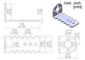 These light-weight brackets (under 5 g each) are specifically designed for the Pololu 20D mm metal gearmotors, such as the 25:1 metal gearmotor 20Dx44L mm. Each bracket features three mounting holes and ten mounting slots for M3 or #4-size screws, giving you a variety of mounting options. A total of four M3 screws (two for each bracket) are included for securing the motor to the bracket.