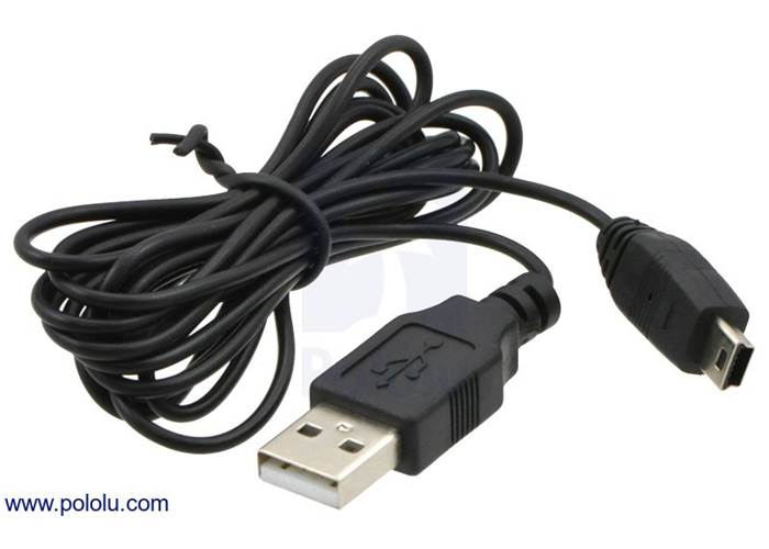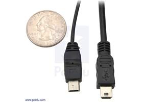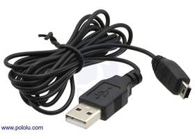 This USB cable is six feet long (1.8 m) and has a male Type-A connector and a male Mini-B connector. It is useful for connecting peripherals that use Mini-B connectors, such as our USB servo controllers and almost all of our other USB devices, to standard USB ports on a computer.