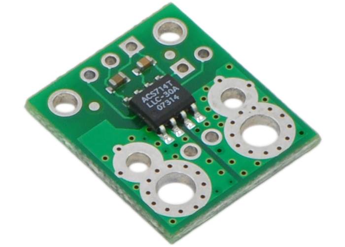 This board is a simple carrier of Allegro’s ±30A ACS714 Hall effect-based linear current sensor, which offers a low-resistance (~1.2 mΩ) current path and electrical isolation up to 2.1 kV RMS.
