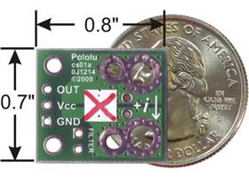 This current sensor is a carrier board or breakout board for Allegro’s ACS714LLCTR-30A-T Hall effect-based linear current sensor; we therefore recommend careful reading of the ACS714 datasheet (701k pdf) before using this product. The sensor operates at 5 V and has an output sensitivity of 66 mV/A. The board ships fully populated with its SMD components, including the ACS714, as shown in the product picture. The following list details some of the sensor’s key features: