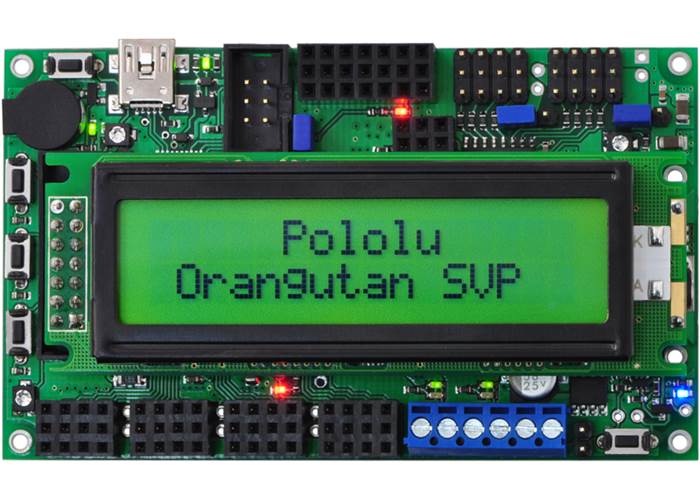 The Orangutan SVP-324 robot controller is a super-sized version of our popular Orangutan SV , with a built-in AVR ISP programmer, more I/O lines, and more regulated power.