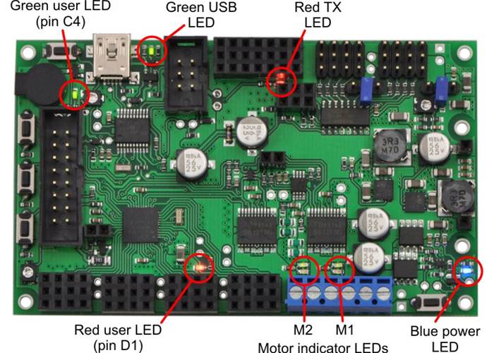 The Orangutan SVP is compatible with freely available development software for Atmel’s AVR microcontrollers, including Atmel Studio and the WinAVR GCC C/C++ compiler. We provide an extensive set of software libraries that make it easy to interface with all of the integrated hardware, including the auxiliary microcontroller. Using these libraries, it takes just a few simple lines of code to write to the LCD, read button presses, drive motors, and control servos. These libraries come with a number of sample programs that demonstrate how to use the various components on the Orangutan SVP.