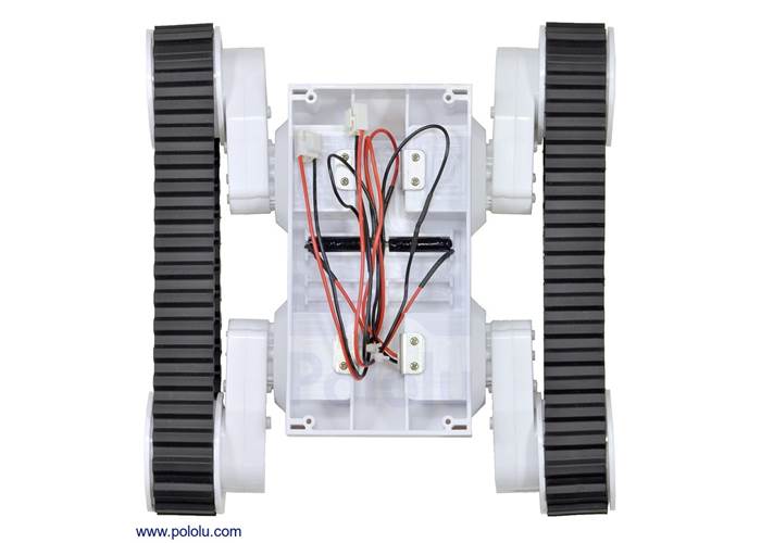 With only four motor leads and two battery leads, it is easy to interface the chassis with most dual motor controllers and robot controllers. Simply connect the battery holder leads to the controller’s power source and the motor leads to the controller’s motor driver outputs. Each set of motor leads is terminated with a female 3.96 mm pitch, 3-pin JST VH-style connector (the middle pin is not used), which our male premium jumper wires plug into nicely.