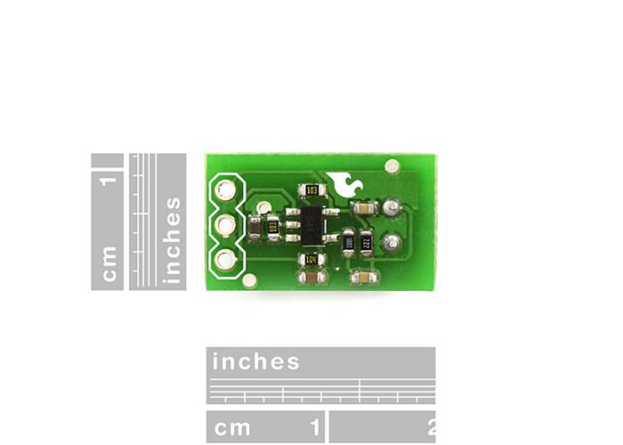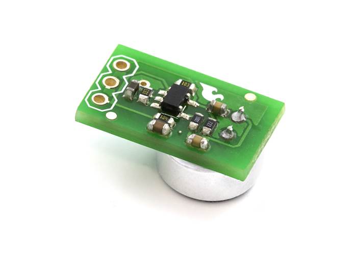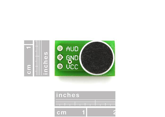 Ready to add sound detection to your next project? This compact breakout board from SparkFun couples a small electret microphone with a 100x opamp, converting sound into amplified analogue voltages that can be measured by a microcontroller’s analogue-to-digital converter (ADC). Power is supplied to the VCC pin and should be between 2.7 to 5.5 V. The breakout board pins have a 0.1" pitch and work with 0.1" male headers and 0.1" female headers.