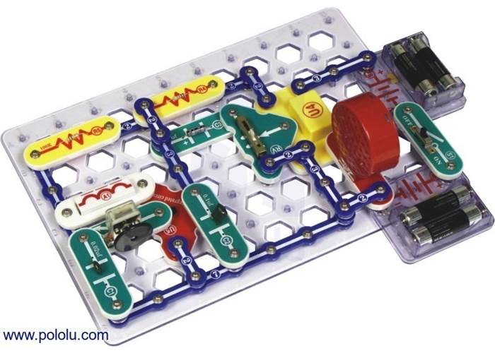 Winner of the Dr. Toy 100 Best Children’s Products award, the Snap Circuits educational kits by Elenco are a great way to learn about electronic circuits. Each Snap Circuits kit comes with full-colour manuals and colour-coded, snap-together parts that make circuit building easy. The manuals have many circuit projects that all feature a colour diagram of the circuit, an educational objective, step-by-step assembly instructions, and a description of what the assembled circuit should do. No tools are required for circuit assembly.The snap-on 2-AA battery holders power the circuits; AA batteries are required but not included. The product box suggests that Snap Circuits are appropriate for people ages 8 – 108.
