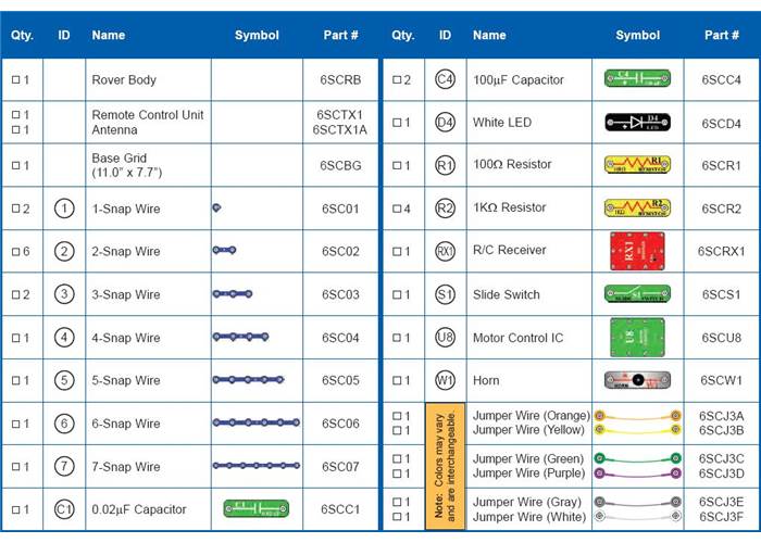 Here are just a few of the projects in the Snap Circuit Rover manual: