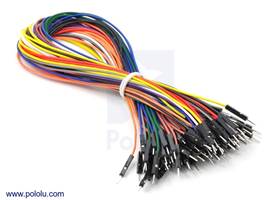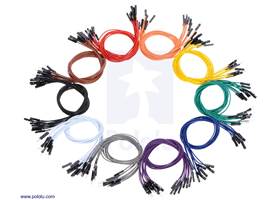 These premium jumper wires are stranded 26 AWG wires with male terminations on both ends , for use with 0.1″ (2.54 mm) female headers, connectors, and solderless breadboards. The assortment of 3″ (7.5 cm) wires includes five each of ten different colors.