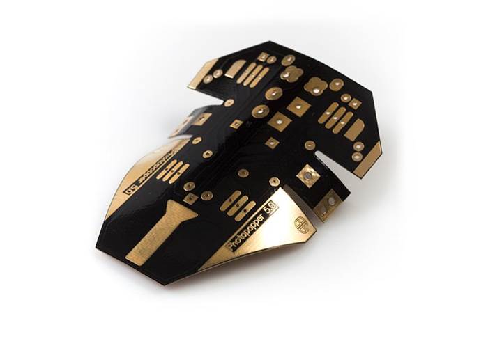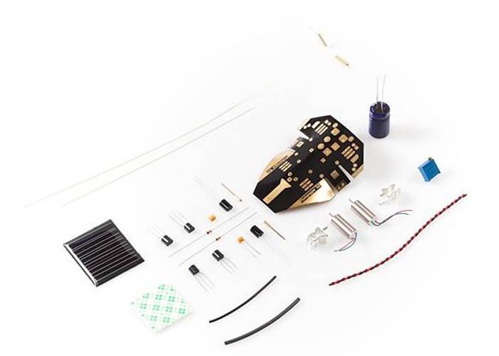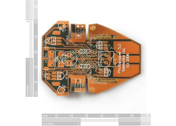 The Photopopper Photovore 5.0 uses new "MillerEngine" technology to make a very dynamic light-seeking & obstacle-avoiding robot. All components necessary for the Photopopper are in the kit, including a high-quality printed circuit board, optics, motors, and a very complete 12 page instruction manual with over 26 illustrations and images. The BEAM Photopopper Photovore kit is designed to be a straight-forward kit to assemble and tune, but does require fundamental soldering skills and hand-tool abilities to complete successfully.