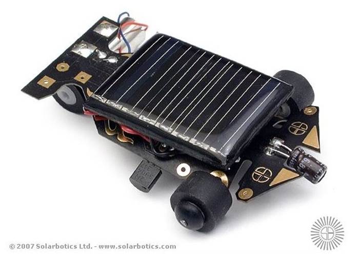 Solarbotics' SolarSpeeder v2 Kit is a very quick Solaroller that can cover 3 meters (10 feet) in under 40 seconds in direct sunlight. This is a fun beginner kit with easy to understand electronics and does not require programming or complicated microcontrollers.