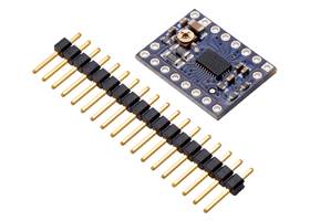 The DRV8880 stepper motor driver carrier ships with one 1×18-pin breakaway 0.1" male header. The headers can be soldered in for use with solderless breadboards or 0.1" female connectors. You can also solder your motor leads and other connections directly to the board.