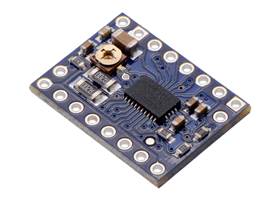 For alternative, pin-compatible stepper motor drivers, consider our DRV8825 carrier, DRV8824 carrier, or DRV8834 carrier. The DRV8825 can deliver more current (1.5 A continuous per phase without additional cooling), and the DRV8834 operates down to 2.5 V, making it suitable for low-voltage applications.
