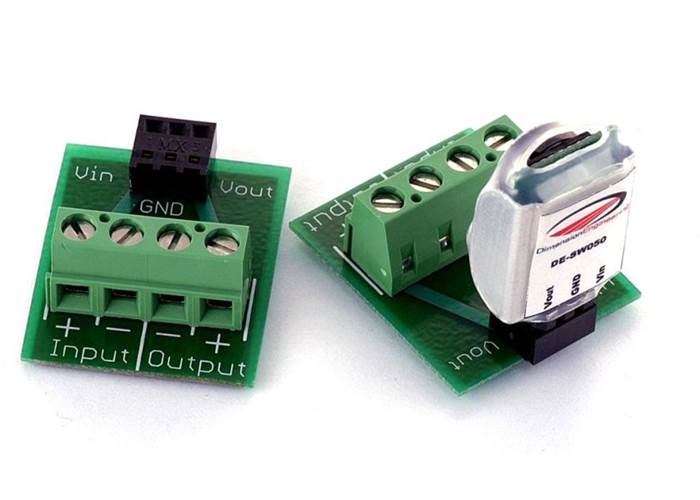 This little breakout board makes it easy to use our DE-SW050, DE-SWADJ3 regulators without solding permanently in place.