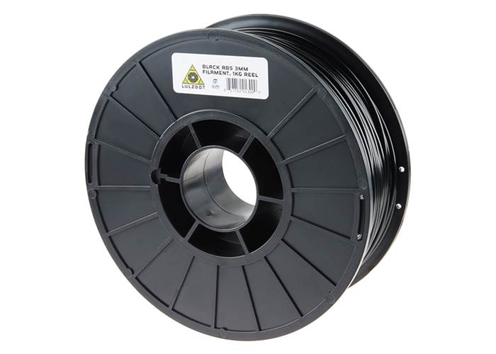This is a 1kg (2.2lb) reel of 3mm black ABS (acrylonitrile butadiene styrene) plastic filament for 3D printing. ABS is a great general purpose filament with high strength and good print quality. ABS is one of the most popular 3D printing materials available due to its strength and ease of printing. This filament is an incredibly durable plastic that can be used in prototypes or even the parts found on your TAZ 3D printer!