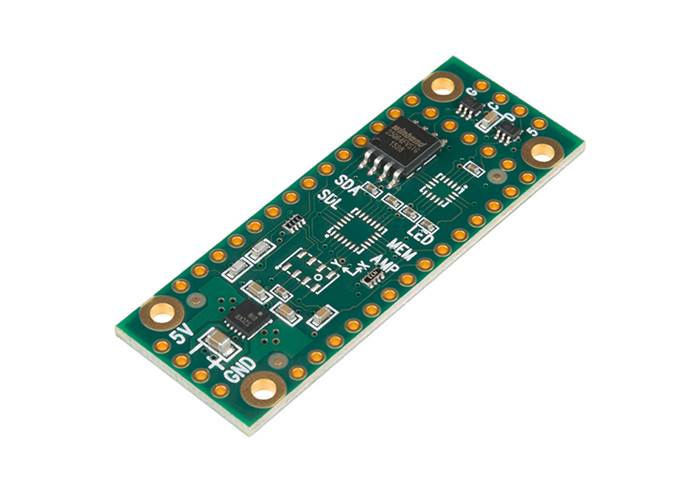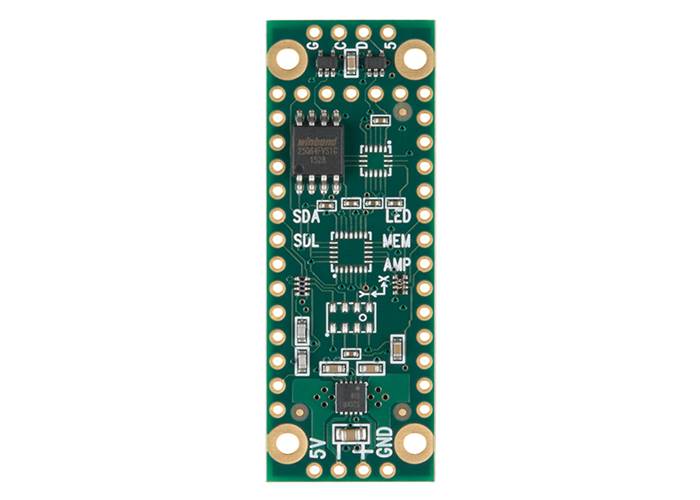 This low-cost (LC) Teensy Prop Shield is meant for making light and sound effects on small, handheld props and wearable costumes. This shield features a 2W audio amp, high-speed 5V buffers for driving APA102 LEDs, and an 8MB flash memory. This economical board is approximately the size of a Teensy, just slightly longer to allow space for mounting holes and connections for power, speaker and LEDs.