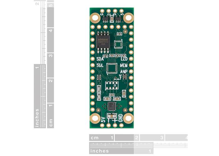 This low-cost (LC) Teensy Prop Shield is meant for making light and sound effects on small, handheld props and wearable costumes. This shield features a 2W audio amp, high-speed 5V buffers for driving APA102 LEDs, and an 8MB flash memory.