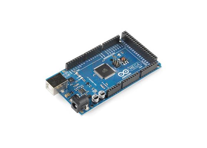 The Arduino Mega is a microcontroller board based on the ATmega2560. It has 54 digital input/output pins (of which 14 can be used as PWM outputs), 16 analog inputs, 4 UARTs (hardware serial ports), a 16 MHz crystal oscillator, a USB connection, a power jack, an ICSP header, and a reset button. It contains everything needed to support the microcontroller; simply connect it to a computer with a USB cable or power it with a AC-to-DC adapter or battery to get started. The Mega is compatible with most shields designed for the Arduino Duemilanove or Diecimila.