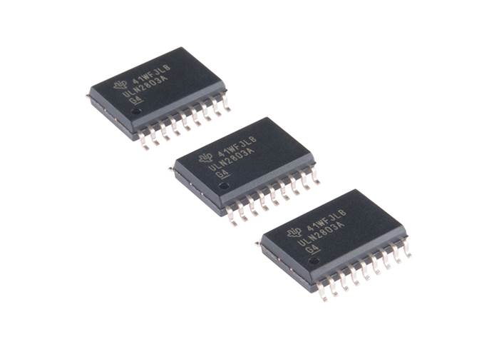 This simple Transistor Array pack contains three SMD ULN2803 ICs from Texas Instruments. Each of these tiny ICs consists of eight NPN Darlington pairs that feature high-voltage outputs with common-cathode clamp diodes for switching a board’s inductive loads with a collector current of 500mA.