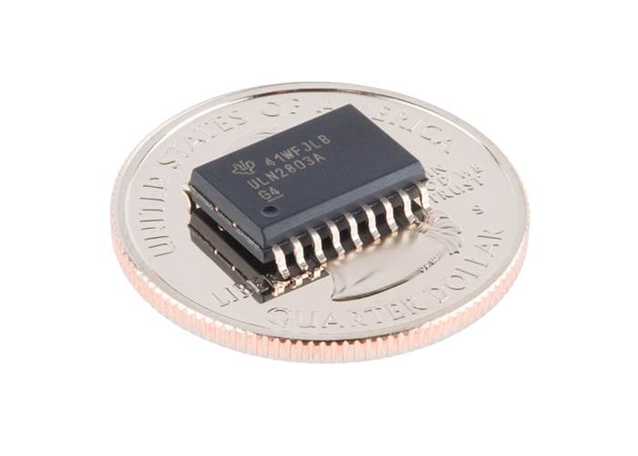 The ULN2803 chips in the Transistor Array are ideal when used in applications like relay drivers, hammer drivers, lamp drivers, display drivers (LED and petrol discharge), line drivers, and logic buffers. Additionally, each ULN2803 has a 2.7-kΩ series base resistor for each Darlington pair for operation directly with TTL or 5V CMOS devices.