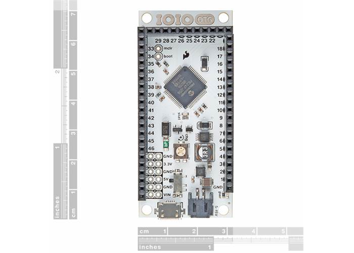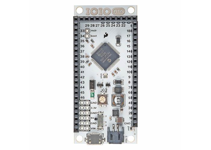 Are you a Java developer looking to add advanced hardware I/O capabilities to your Android or PC application? Well, then the IOIO-OTG is for you! The IOIO-OTG (pronounced “yo-yo-O-T-G”) is a development board specially designed to do just that. It features a PIC microcontroller, which acts as a bridge connecting an app on your PC or Android device to low-level peripherals like GPIO, PWM, ADC, I2C, SPI and UART. An app-level library helps you write control code for these low-level peripherals in the same way you’d write any other Java app! This special version of our older Version 2 of the IOIO-OTG comes with female headers already soldered onto the board!