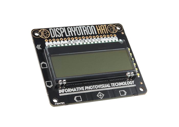 The Pimoroni Display-O-Tron HAT is a “shield” for the Raspberry Pi that provides you with a 16x3 character LCD as well as a full ASCII character set you can define eight of your own custom characters for special icons, graphs, or decoration for your Pi.