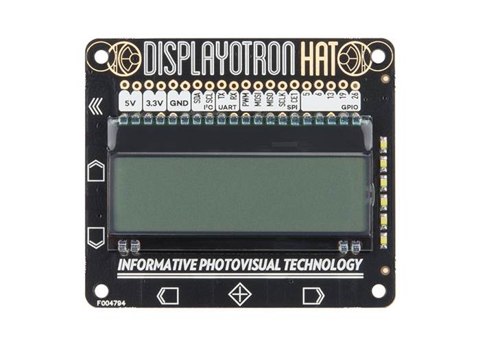 The Pimoroni Display-O-Tron HAT is a “shield” for the Raspberry Pi that provides you with a 16x3 character LCD as well as a full ASCII character set you can define eight of your own custom characters for special icons, graphs, or decoration for your Pi. This HAT has been equipped with multiple capacitive touch pads, a six-zone RGB backlight, and GPIO breakout pins.