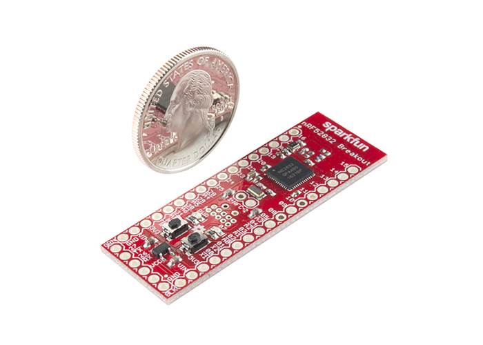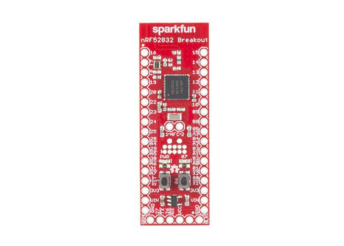SparkFun’s nRF52832 Breakout provides easy access to all of the chip’s features. It breaks out all of the nRF52’s I/O pins, provides a 32.768kHz RTC crystal, a user-programmable button and LED, and a trace antenna to send and receive those 2.4GHz transmissions. Plus, to make the chip as easy-to-flash as possible, the breakout comes pre-programmed with a serial bootloader.