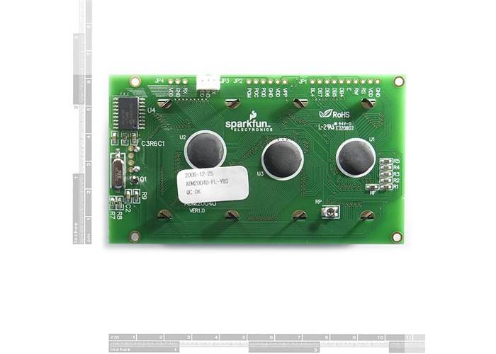 This is the latest evolution of SparkFuns serial LCD. Included on a single board is a 20x4 LCD and an embedded circuit based around a PIC 16F88. The on-board PIC takes a TTL serial input and prints the characters it receives onto the LCD. The installed firmware also allows for a number of special commands so you can clear the screen, adjust the backlight brightness, turn the display on/off, and more.