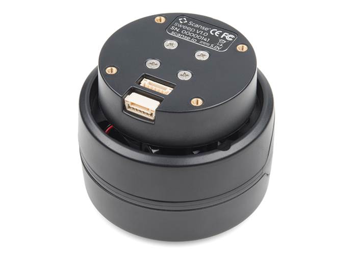 The Sweep is a single-plane scanner. This means that as its head rotates anti-clockwise, it records data in a single plane. The beam starts out at approximately 12.7mm in diameter and expands by approximately 0.5 degrees. Sweep can be connected to low-level microcontrollers directly using its serial port, or to a PC using the provided USB-to-serial converter. It even has two serial port connectors with identical signals, which allows for more mounting options.