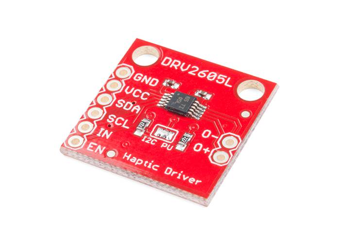The DRV2605L is capable of driving two different types of motors, ERM and LRA. It is important to know, however, that the default firmware for the DRV2605L is set for use with ERM type motors. We have created an Arduino library that makes the DRV2605L easy to use with six different ERM effects and one LRA effect.