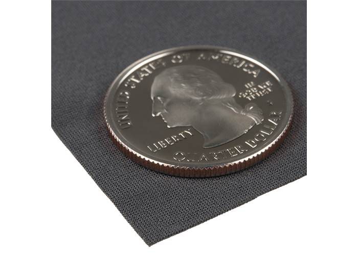 This EeonTex fabric is a bidirectionally stretchy nylon/spandex, elastic fabric coated with a long-lasting conductive formulation. This material has found use in soft, biometric strain and pressure sensors, such as for beds and seats, or where conforming to irregular shapes is the only thing required. Each sheet of the EeonTex Conductive Stretchable Fabric is pre-cut into 12 inch by 13 inch sheets about 0.38mm thick. This fabric is very versatile and perfect for anyone interested in wearables and e-textiles.