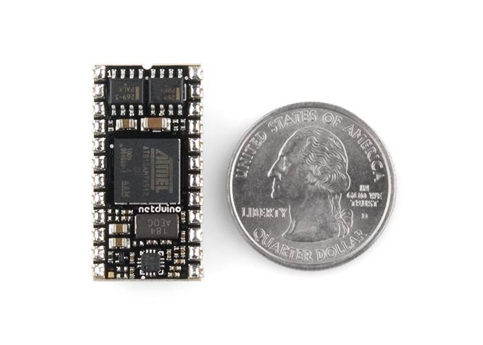 The Netduino Mini looks like a little bug but is actually a 32-bit microcontroller in a small breadboard friendly package. It has 16 GPIOs with SPI, I2C, UART, 4 PWMs, and 4 ADC channels. It runs the .Net Micro framework allowing you to be super productive writing C# in Visual Studio.