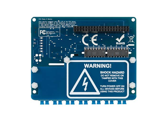 The RELAYplate from Pi-Plates is the first dedicated relay board for the Raspberry Pi designed to meet the safety requirements of UL 60950 while being capable of switching 120 volts AC. Each of the seven relays is UL rated to switch 1 amp at 120volts AC or 30 volts DC.