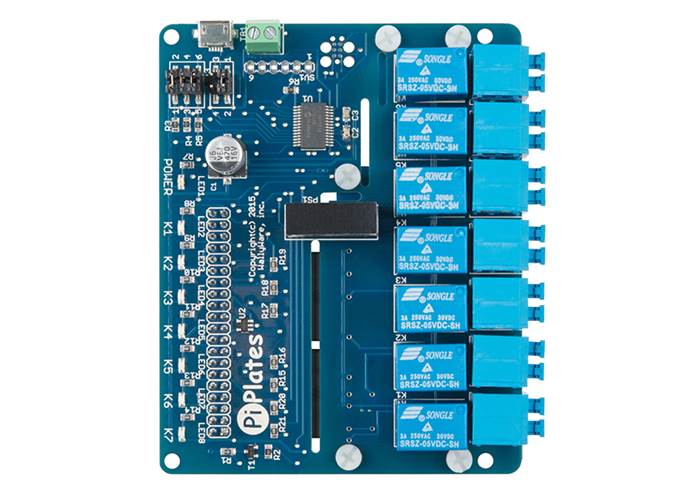 The RELAYplate from Pi-Plates is the first dedicated relay board for the Raspberry Pi designed to meet the safety requirements of UL 60950 while being capable of switching 120 volts AC. Each of the seven relays is UL rated to switch 1 amp at 120volts AC or 30 volts DC. And, like all Pi-Plates, you can stack these boards to increase your relay count to 56 using eight plates. The RELAYplate board is compatible with the DAQCplate and MOTORplate, allowing you to create the perfect stack of boards to control your project.