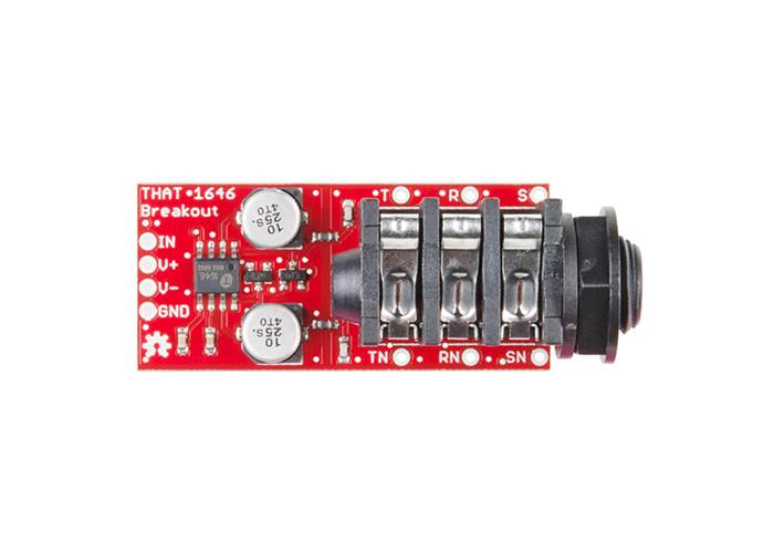 The THAT 1646 OutSmarts Breakout Board offers an easy solution to adding a balanced audio output to your circuits. The THAT OutSmarts technology has been designed as a high-grade analogue line driver and offers a low distortion and high common mode rejection in real-world audio applications. Each breakout board combines the THAT 1646 IC, its supporting components and a ¼" TRS (Tip Ring Sleeve) socket. With these powers combined, you will find it very easy to use the output drivers on breadboards and in projects!