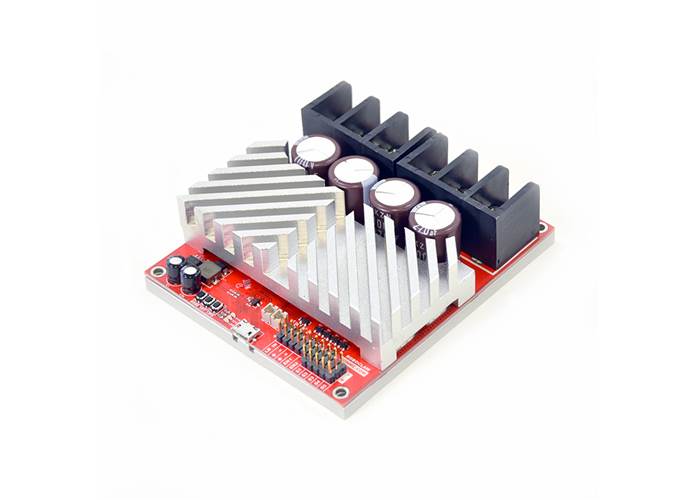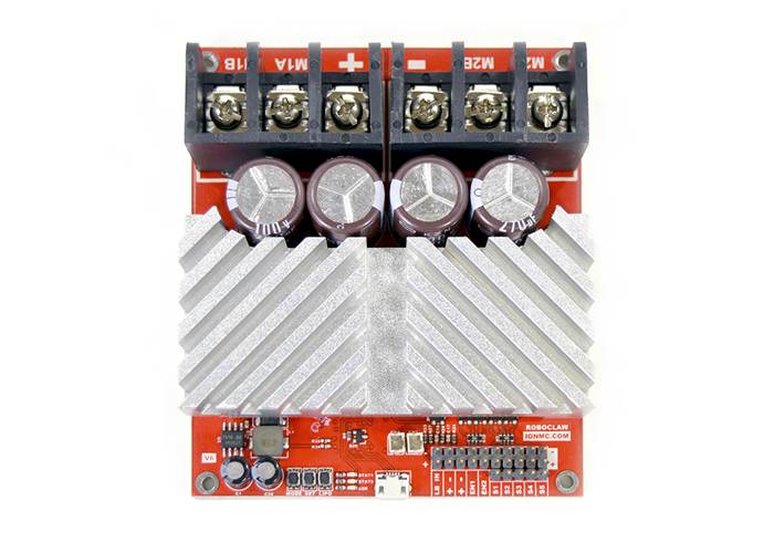 The RoboClaw from Ion Motion Control (formerly Orion Robotics) is an efficient, versatile, dual-channel synchronous regenerative motor controller. It can supply two brushed DC motors with 7.5 A, 15 A, 30 A, 45 A, or 60 A continuous (depending on the model) at voltages from 6 V to 34 V, and it allows for peak currents up to twice the maximum continuous rating.