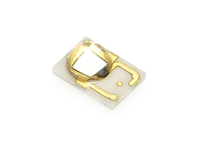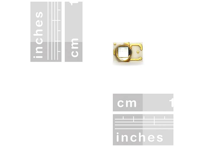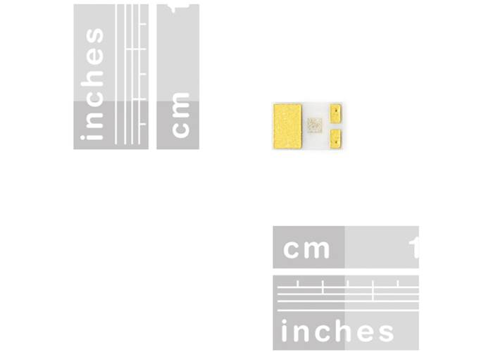 These LEDs can be blindingly bright and have a max forward current of 1A! This LED has a typical forward voltage of 3VDC (2.55V to 3.99V range). They’re also tiny; measuring in at about 3 x 4.5 mm.