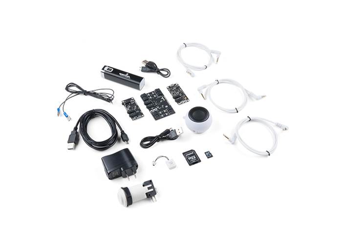 The Spectacle Sound Kit makes it easy to incorporate sounds, tunes and other audio ideas into your next project and to activate them at the push of a button! With the Sound Kit you gain the ability to utilise the OGG Vorbis high-compression audio format for your next or current button-controlled sound-playback project. Inside each Spectacle Sound Kit you will find all the boards required to create an audio project (the Spectacle Director, Audio, and Button Boards), as well as all the accessories needed to get you hooked up and heard!