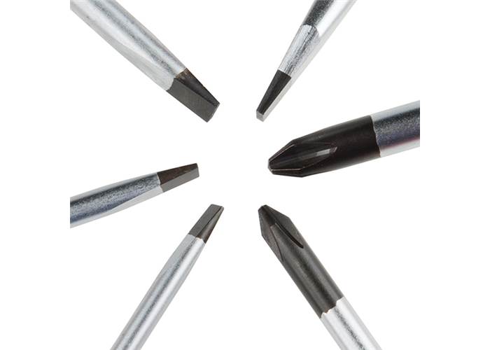 The screwdrivers in this set have been equipped with durable, satin-finished chrome molybdenum steel shafts with black-treated tips that help to eliminate light reflection while in use. Additionally, these screwdrivers have a shatterproof seamless-handle cap, just in case you accidentally drop them.