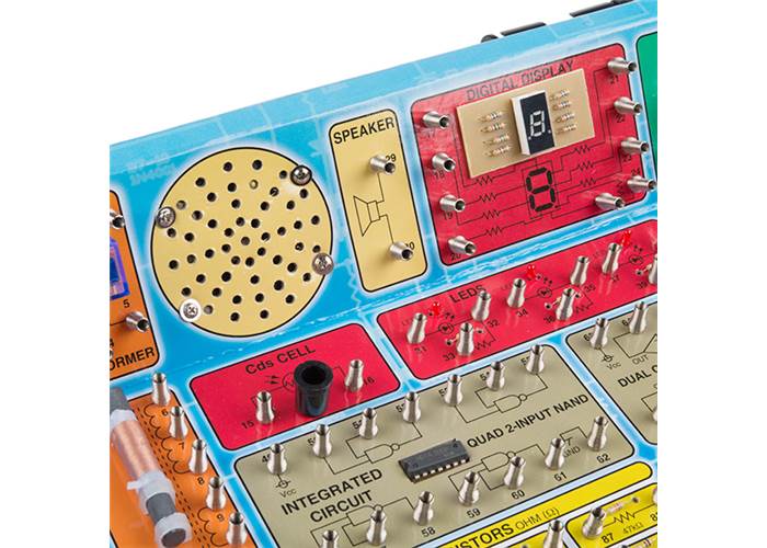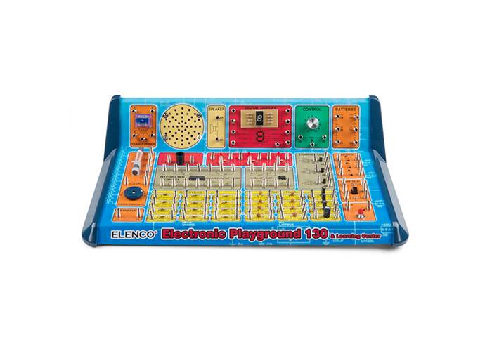 The 130-in-1 Electronic Playground includes a step-by-step illustrated manual for easy construction as well as a built-in speaker, 7-segment LED display, two integrated circuits and rotary controls.