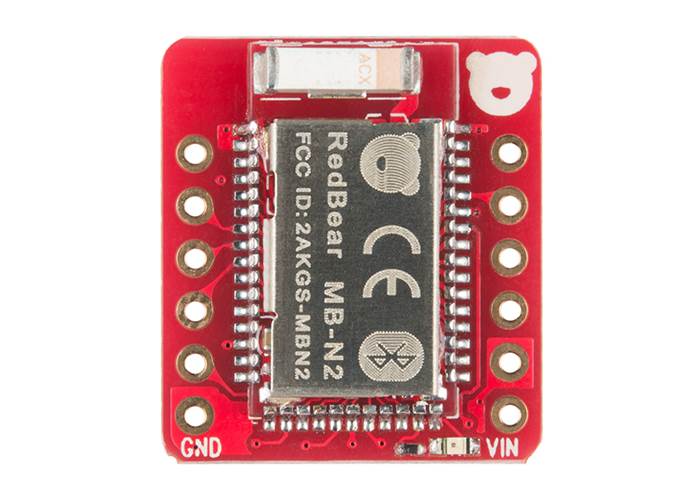 Note: The RedBearLab BLE Nano includes two 1x6 male headers that can be soldered on after purchase for easy interface.