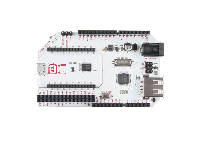 The Omega facilitates programming the microcontroller wirelessly using the Arduino IDE, while it and the ATmega328P can communicate through a Serial UART connection or using the I2C bus protocol. The microcontroller pins are all accessible and arranged in the same way as the Arduino Uno, giving you the ability to quickly port over Arduino projects and reuse any existing Arduino Shields.
