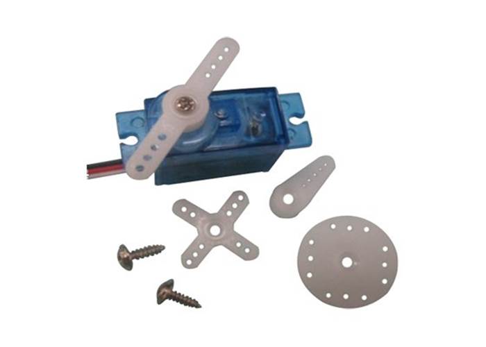 Dagu 8g is a great low cost micro servo and comes with servo horns. Perfect for tiny actuators or little walking robots.