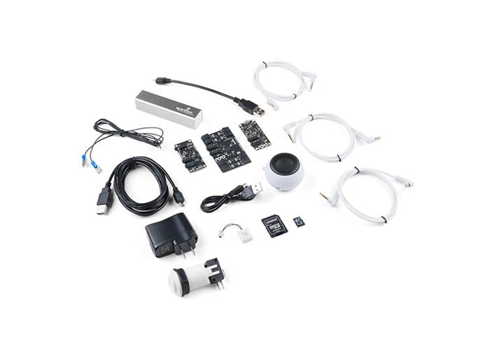 The Spectacle Sound Kit makes it easy to incorporate sounds, tunes and other audio ideas into your next project and to activate them at the push of a button! With the Sound Kit you gain the ability to utilise the OGG Vorbis high-compression audio format for your next or current button-controlled sound-playback project. Inside each Spectacle Sound Kit you will find all the boards required to create an audio project (the Spectacle Director, Audio, and Button Boards), as well as all the accessories needed to get you hooked up and heard!